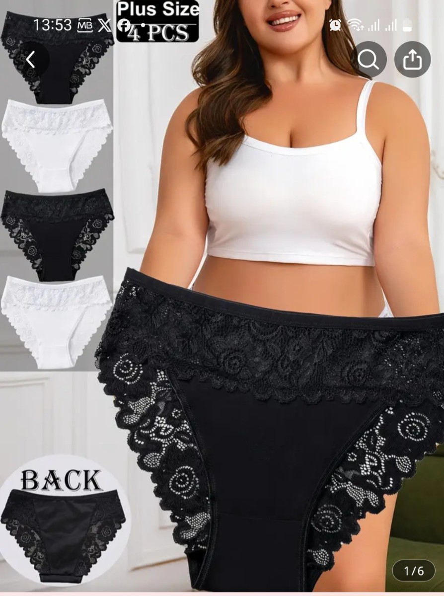 Conjunto de 4 cuecas rendadas pretas e brancas
