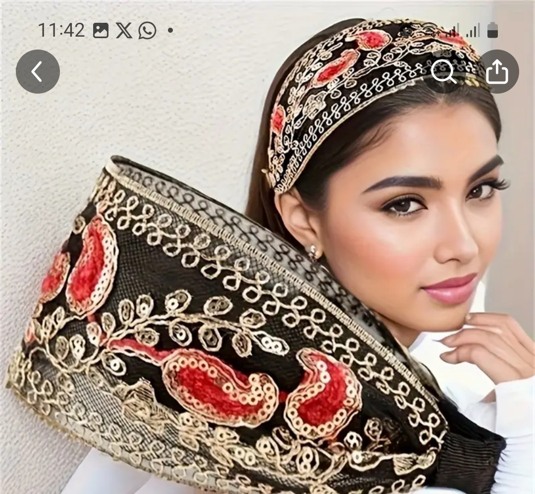 Fig.B - Banda de Lantejoulas para Cabelo estilo boémio preta, dourada e vermelha