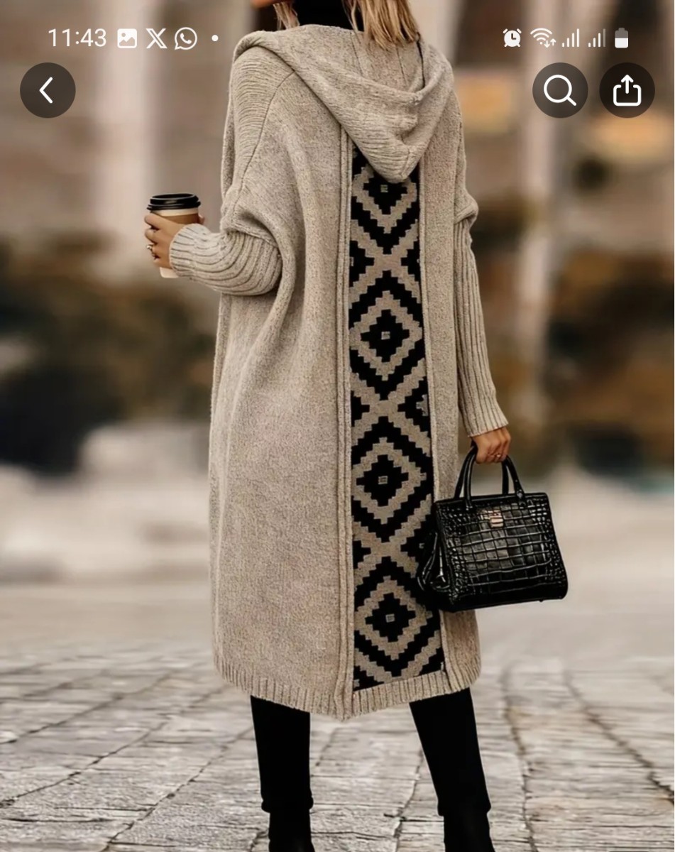 Fig.A - Casaco de Malha comprido preto e creme Plus-size