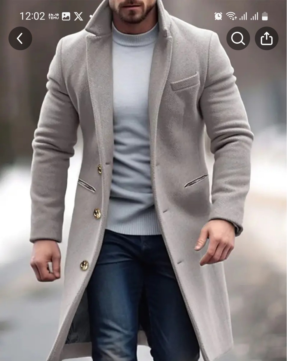 Fig.2 - Casaco Clássico Comprido estilo britânico cinzento claro para Outono e Inverno